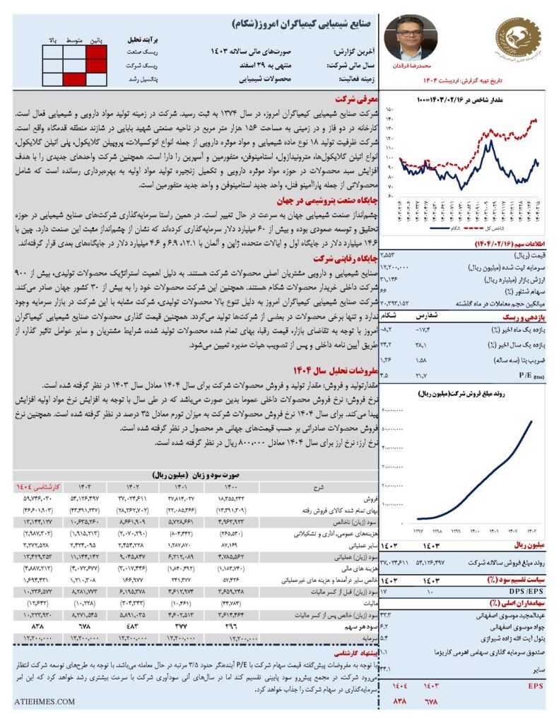 تحلیل بنیادی صنایع شیمیایی کیمیاگران امروز(شکام)